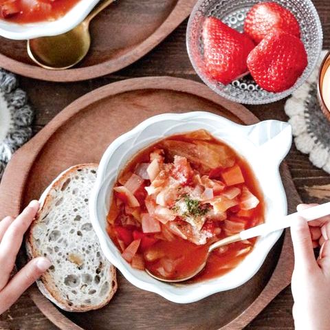 キャベツやピーマンをはじめ、冷蔵庫で持て余しているお野菜をたくさん使ったスープは、野菜の幅広い栄養が簡単に摂れるお料理です。