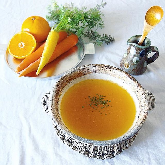 こちらは人参とフルーツで作る爽やかな甘味が魅力のスープです。おやつ感覚でもいただけるレシピで、幼児食にもおすすめ。
