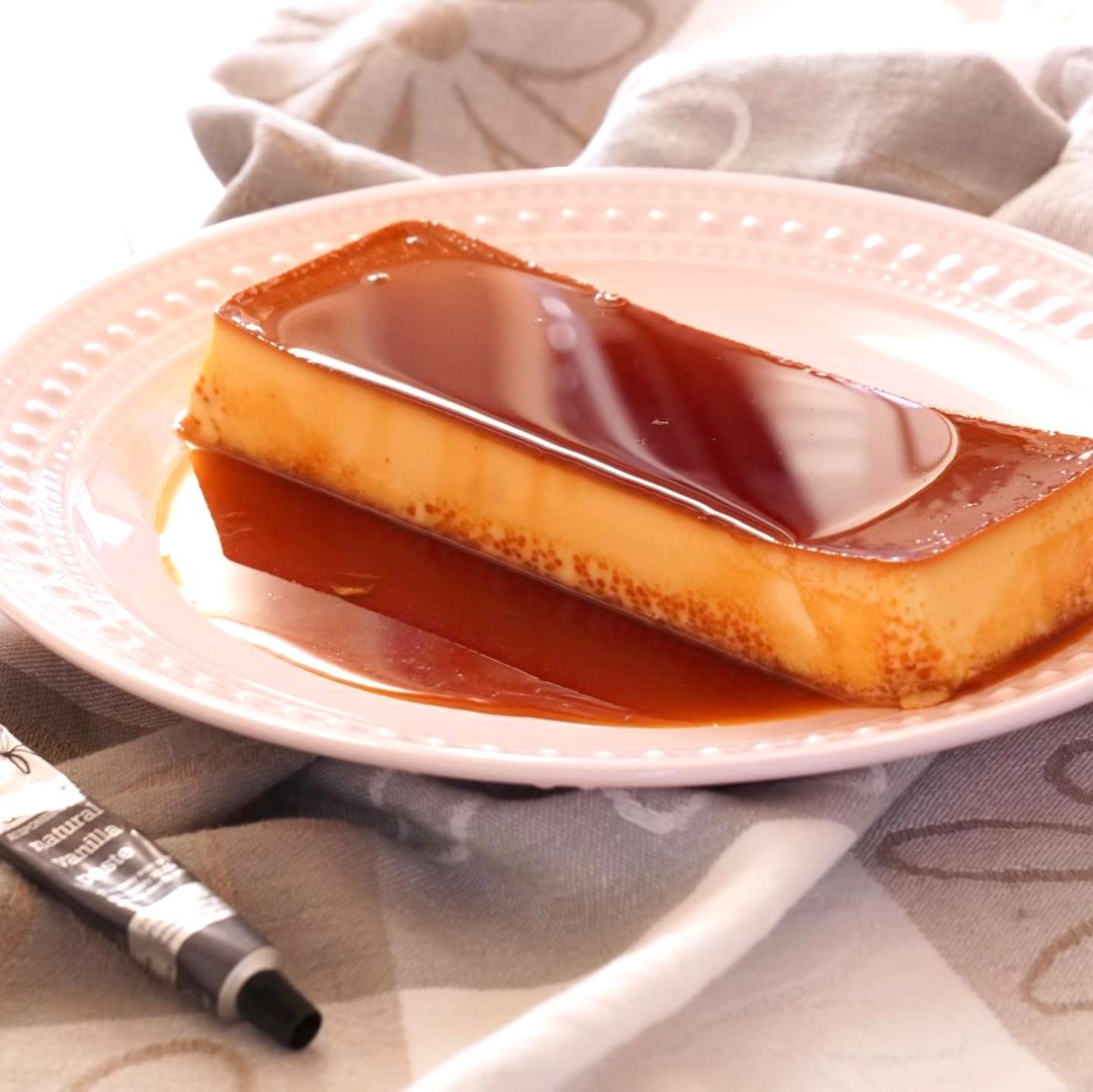 冷蔵庫にあったクリームチーズを少しプラスして焼いた、しっかりしたコクのあるプリンです。