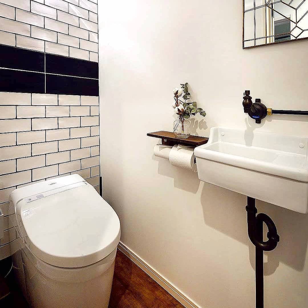 トイレットペーパーを収納する棚も男前系のデザインにすれば、大満足できる仕上がりになるでしょう。