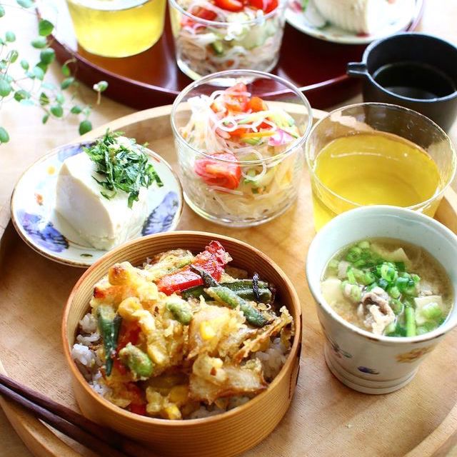 好きな具材で調理できますが、かき揚げの献立に合わせるなら、トマトや紫玉ねぎ、きゅうりなどのカラフルな野菜を入れましょう。食卓が彩り豊かになりますよ。