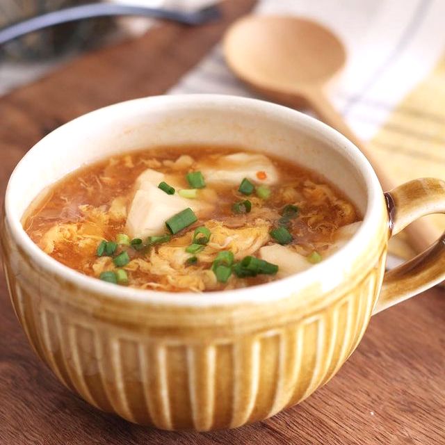 こちらはピリ辛で人気の麻婆風のスープ。中華というキーワードつながりで、まとまりのある献立になりますよ。