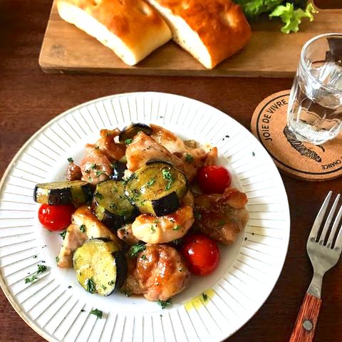 お肉の中でも、比較的脂が少なくヘルシーさが人気の鶏肉をなすとトマトと焼いた主菜のレシピです。