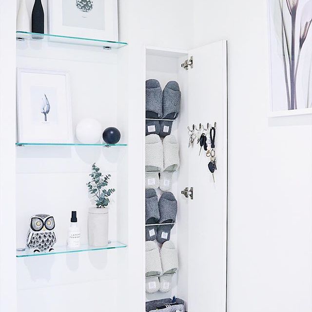 来客が多いという方は、スリッパは見せる収納にするのがおすすめです。見せないように収納してしまうと、出し入れが非常に面倒になってしまいますよね。