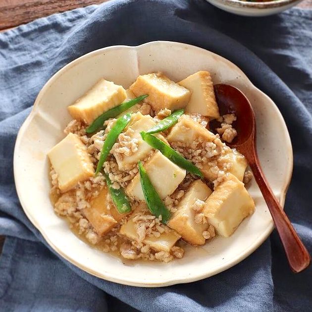 こちらも鶏ひき肉で作るそぼろあんですが、こちらは野菜ではなく厚揚げで作るアレンジレシピ。