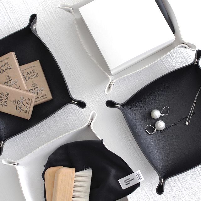 フェイクレザートレーに入れておけば、付箋などの小さなアイテムもデスクで紛失してしまうことがありません。