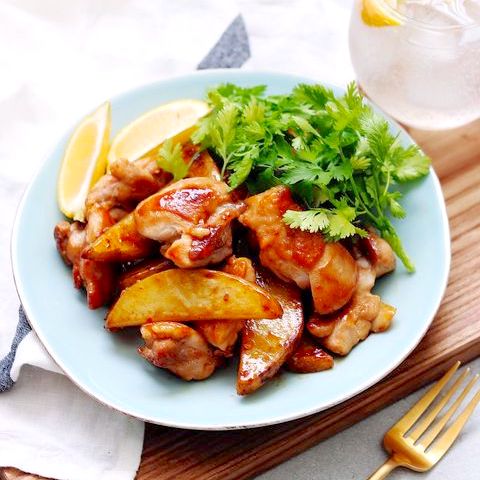 じゃがいもと鶏肉を、ケチャップなどの調味料の黄金比で炒める美味しいレシピです。