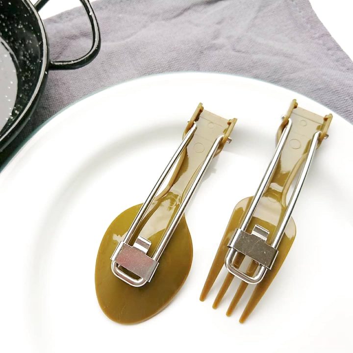 セリアの折りたたみ式のフォーク&スプーンのセットです。キャンプ時はとにかく荷物が多くなるので、軽くて持ち運びしやすいアイテムが便利ですよね。