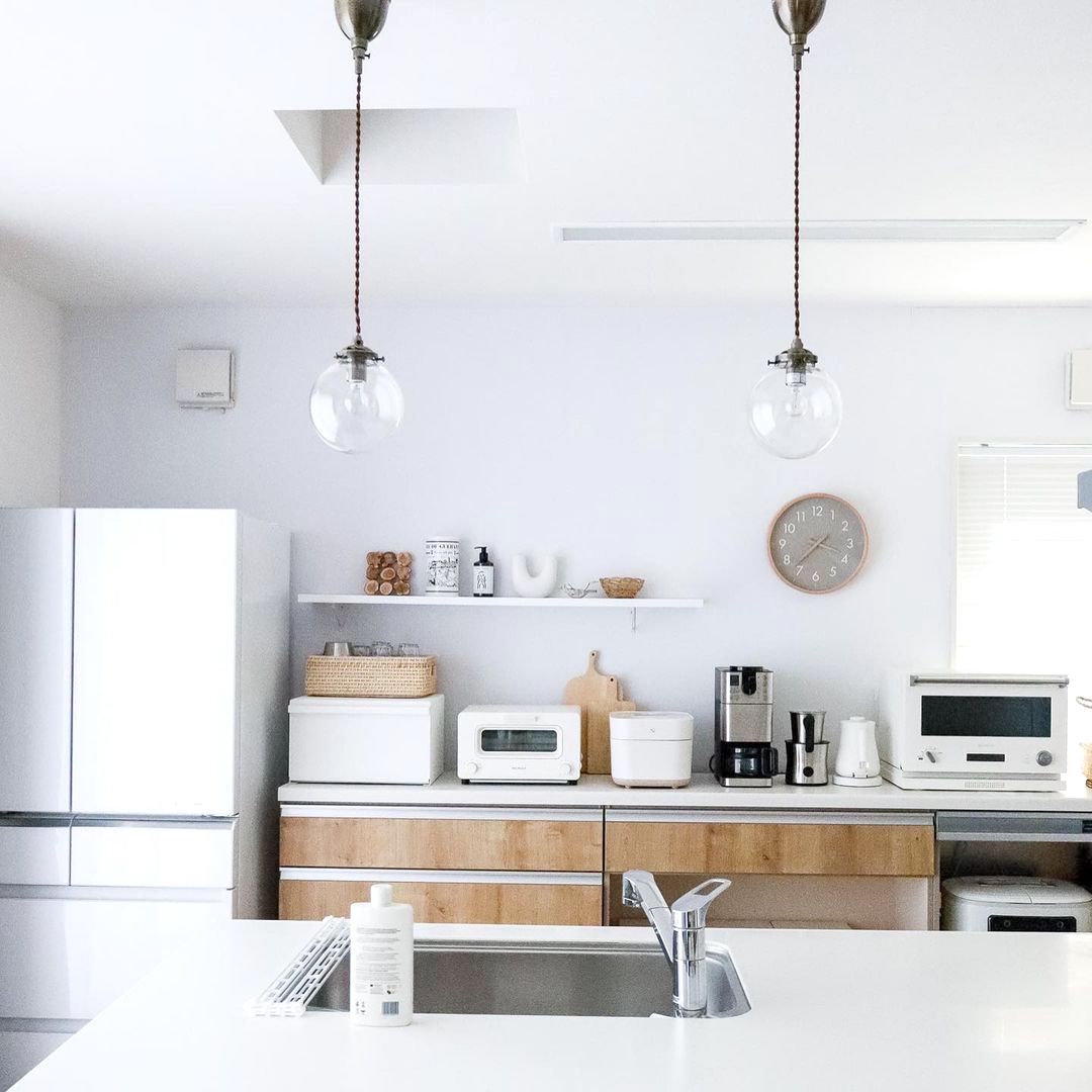 生活感のあるキッチン家電は、ホワイトをチョイスすることで統一感のある空間づくりが叶いますね。