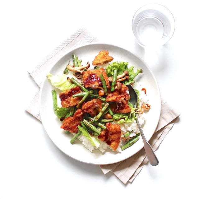 豚バラトンカツの野菜丼は豚バラ肉でとんかつを作り、塩コショウで炒めた野菜やグリーンレタスをトッピングすれば完成の簡単レシピです。
