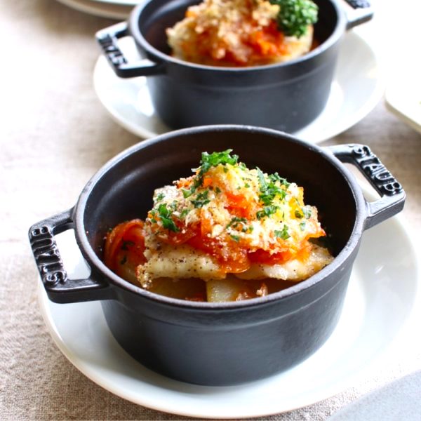 完熟トマトは淡泊な白身魚との相性がよく、パン粉焼きは人気のメニュー。材料の白身魚は鯛やタラ、めかじきなどがスーパーでもよく売っています。