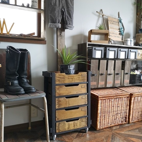 キャスターを付けて可動できるワゴンのようにしてもいいですね。
