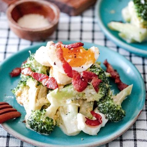 洋食の副菜には、シーザーサラダも定番で人気ですよ。こちらはカリカリベーコンとブロッコリーで作る簡単なシーザー風のサラダです。