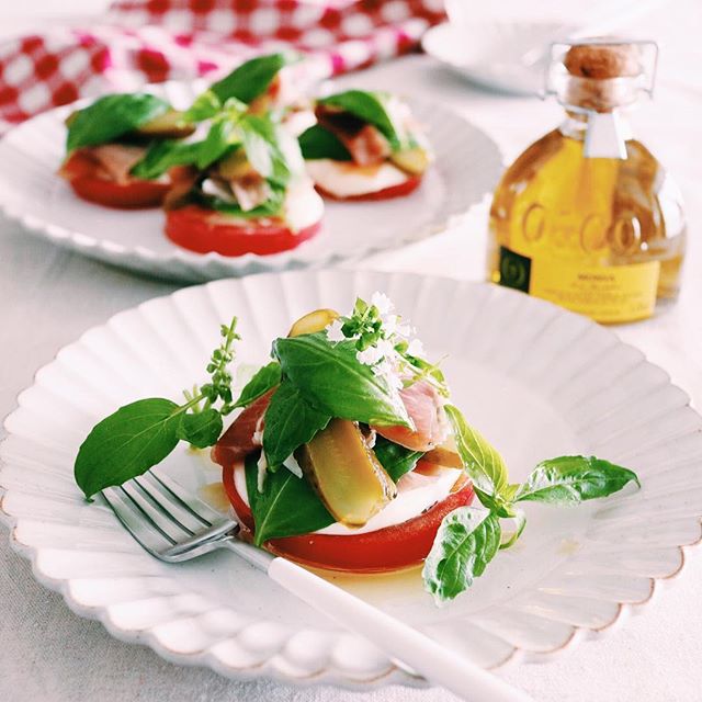 トマトにチーズにオリーブオイルととってもシンプルですが、簡単なのに満足感の高いレシピでもあります。