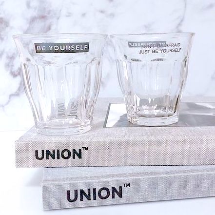 ダイソーのグラスはカジュアルな印象のロゴデザインがとてもおしゃれです。