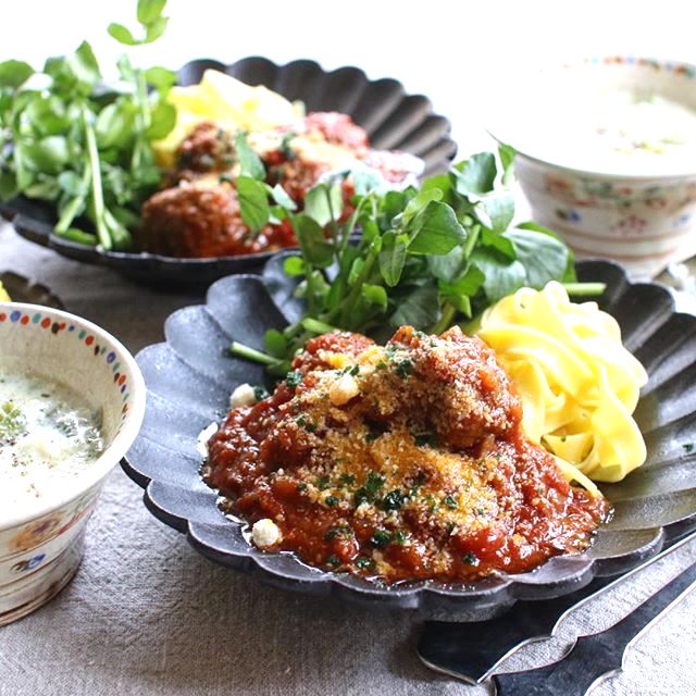 最初にご紹介するのは、ごろごろとした肉団子が絶品のトマトソースパスタの人気レシピです。