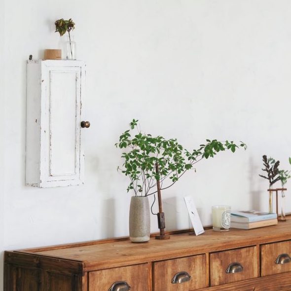 あえて少し奥行きのある板で作ったので、ちょっとした雑貨やドライフラワーなども置けるようになりました。