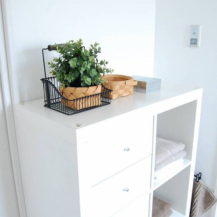 こちらは空間のインテリアに合わせて白で統一したもの。実用性とおしゃれ要素を組み合わせて、便利で素敵な脱衣所インテリアに仕上げましょう。