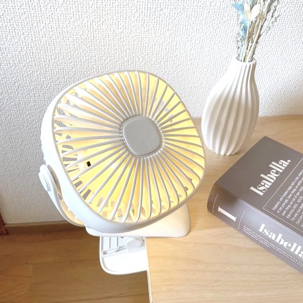 リビング以外の場所でちょっと涼しい風が欲しい時に便利な家電が、こちらの充電式クリップファンです。