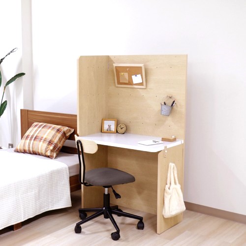 一人暮らしでベッド横にしかテレワーク用デスクをレイアウトできない場合は、2面のパネルがついたワークデスクを取り入れるのがおすすめ。
