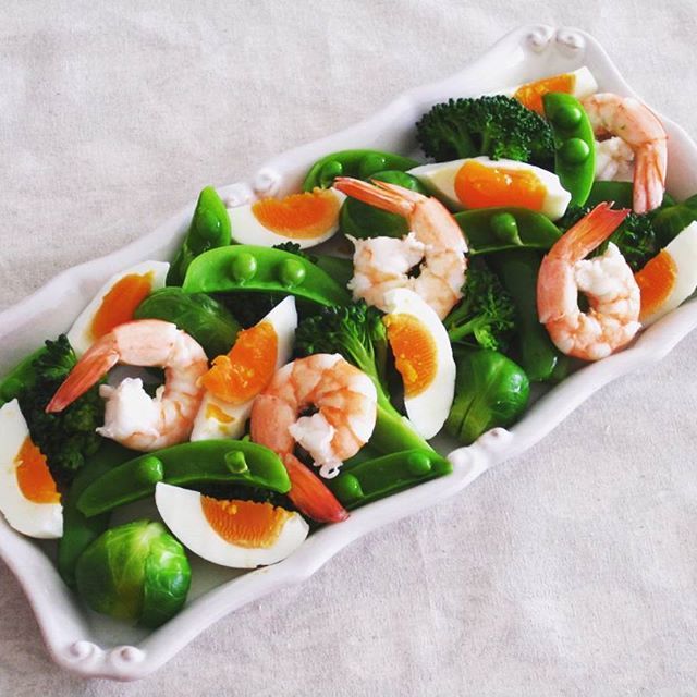 ボリューム満点の副菜レシピから、野菜が美味しい人気レシピをご紹介していきます。こちらのレシピは、魚介をプラスした温サラダ。