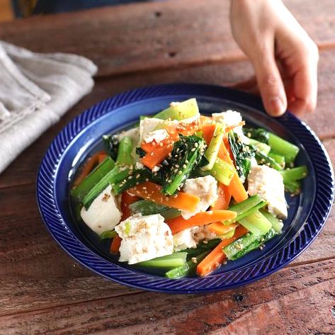 韓国料理で人気のナムルに近いお料理ですが、野菜だけで作るナムルから、豆腐を加えたアレンジも美味しくてヘルシーですよね。