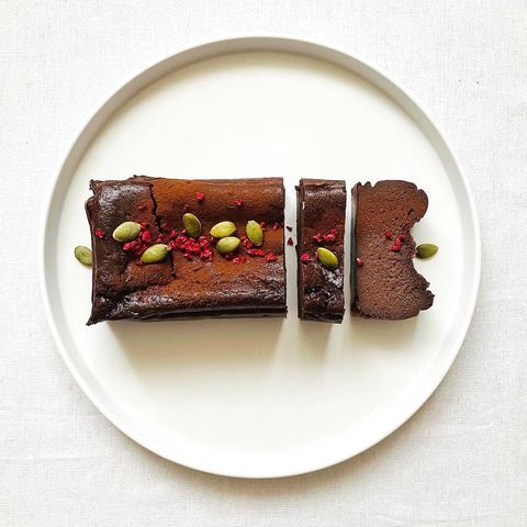 小麦粉の代わりに豆腐と大豆を潰したものを使い、砂糖は入れずにミルクチョコレートの甘さをいかします。