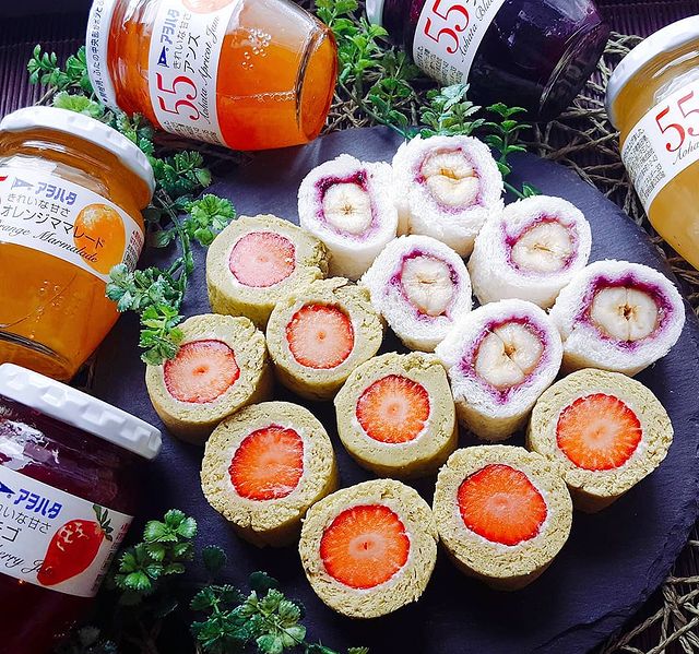 なるべく簡単に済ませたいけど見た目は譲れないという方には、くるくるとロールケーキのように巻いて輪切りにした可愛いロールサンドも是非おすすめしたい人気のジャムの使い道です。
