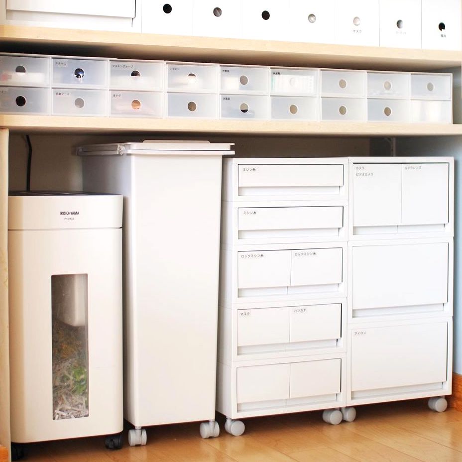 シュレッダーの横には、雑がみを捨てるために無印のダストボックスを新たに置きました!
