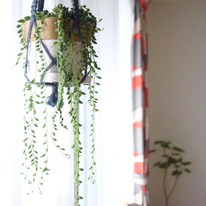 日当たりの良い壁際に置くと、フォトフレームや絵画などとのコラボも楽しめるおしゃれな観葉植物です。いくつか窓辺にかけて飾るのもおすすめですよ。