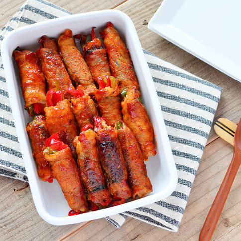 海苔を大量消費してお弁当のおかずを作るなら、人気のピーマンと海苔のピリ辛豚巻きがおすすめです。コチュジャンや醤油などを使った旨辛のたれで、ご飯がすすみます。