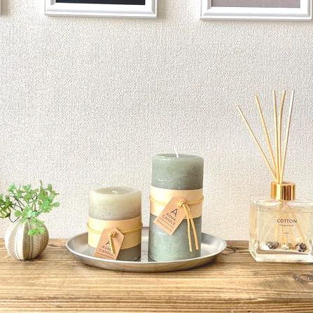 こちらの2つのキャンドルは、トレンドのくすみカラーでとても可愛らしいです。