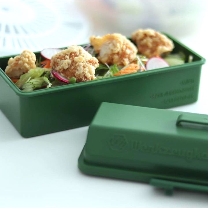 ふんわりと盛れる弁当箱をお探しなら、セリアの工具箱風ランチボックスがおすすめです。
