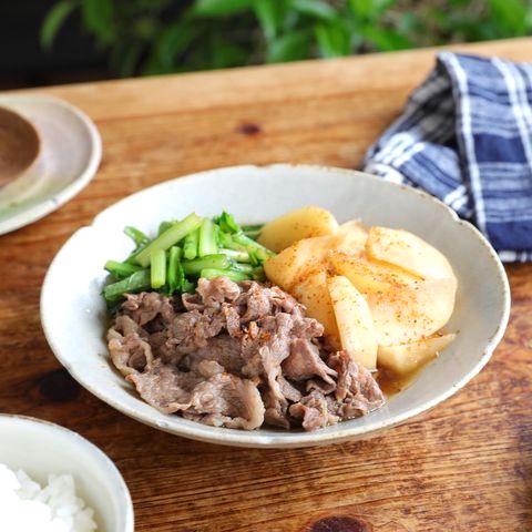 材料に小松菜やカブを使って、ヘルシーに仕上げた美味しいレシピです。牛肉はだし汁や調味料で煮込みにするため、旨味が引き出されます。