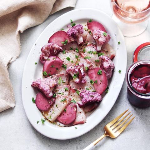 エレガントなワイン色に染まる野菜がオシャレで美味しいピクルスです。