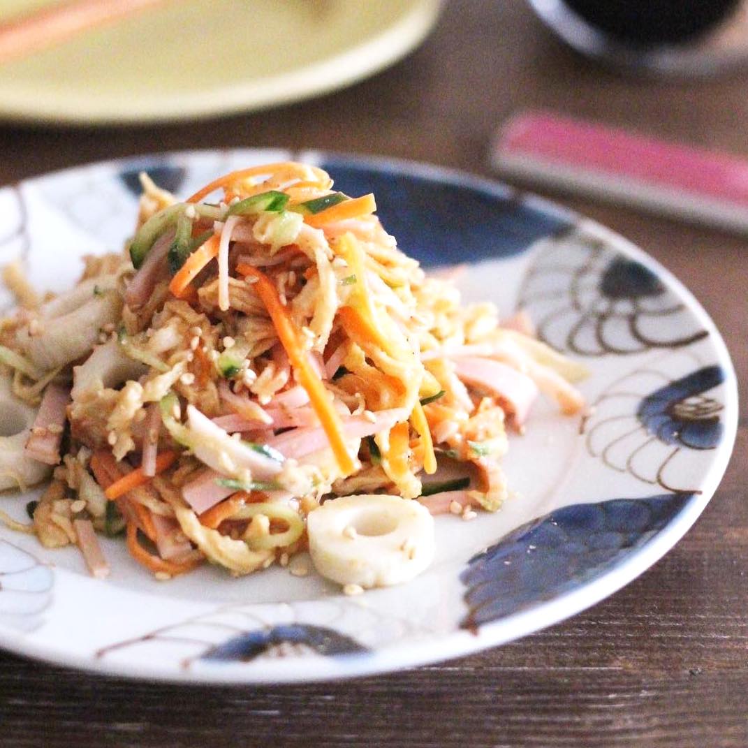 切り干し大根のサラダは、きゅうりやハムなどを加えて具沢山にして、醤油やごま油で中華風に味付けするだけの簡単なレシピです。
