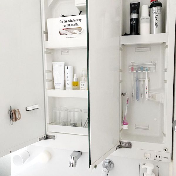 ヘアゴムホルダーはヘアゴムとピンセット、歯磨き粉をチューブホルダーに付けて使ってます。