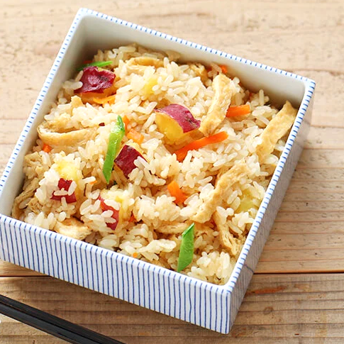通常のお米での炊き込みご飯も美味しいですが、もち米を使うおこわは、お芋の甘さと良く合いますので、秋冬のメニューにぴったり。