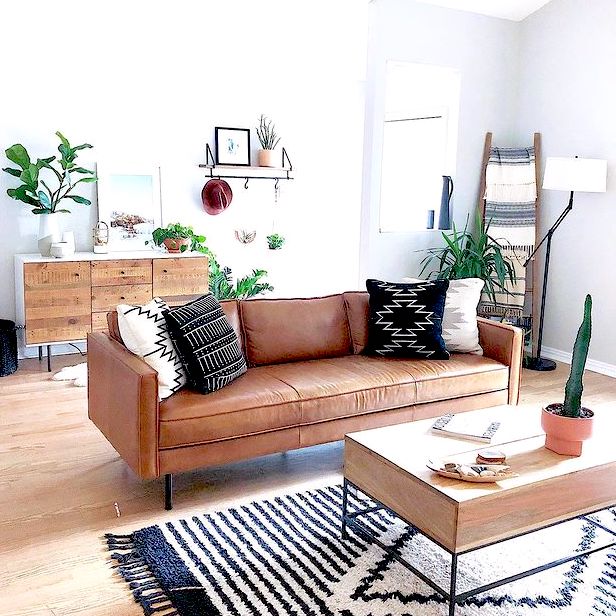 座り心地の良いレザーソファが主役になった海外のリビングルーム。